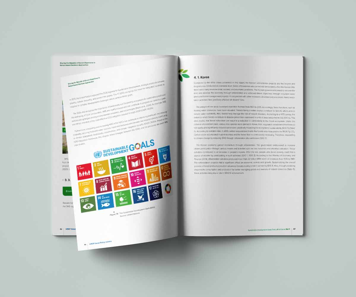 자연기반 해법(Nature-based Solutions)’을 주제로, 지속가능성과 국제적 신뢰성을 시각적으로 담아내는 데 중점을 두었습니다.